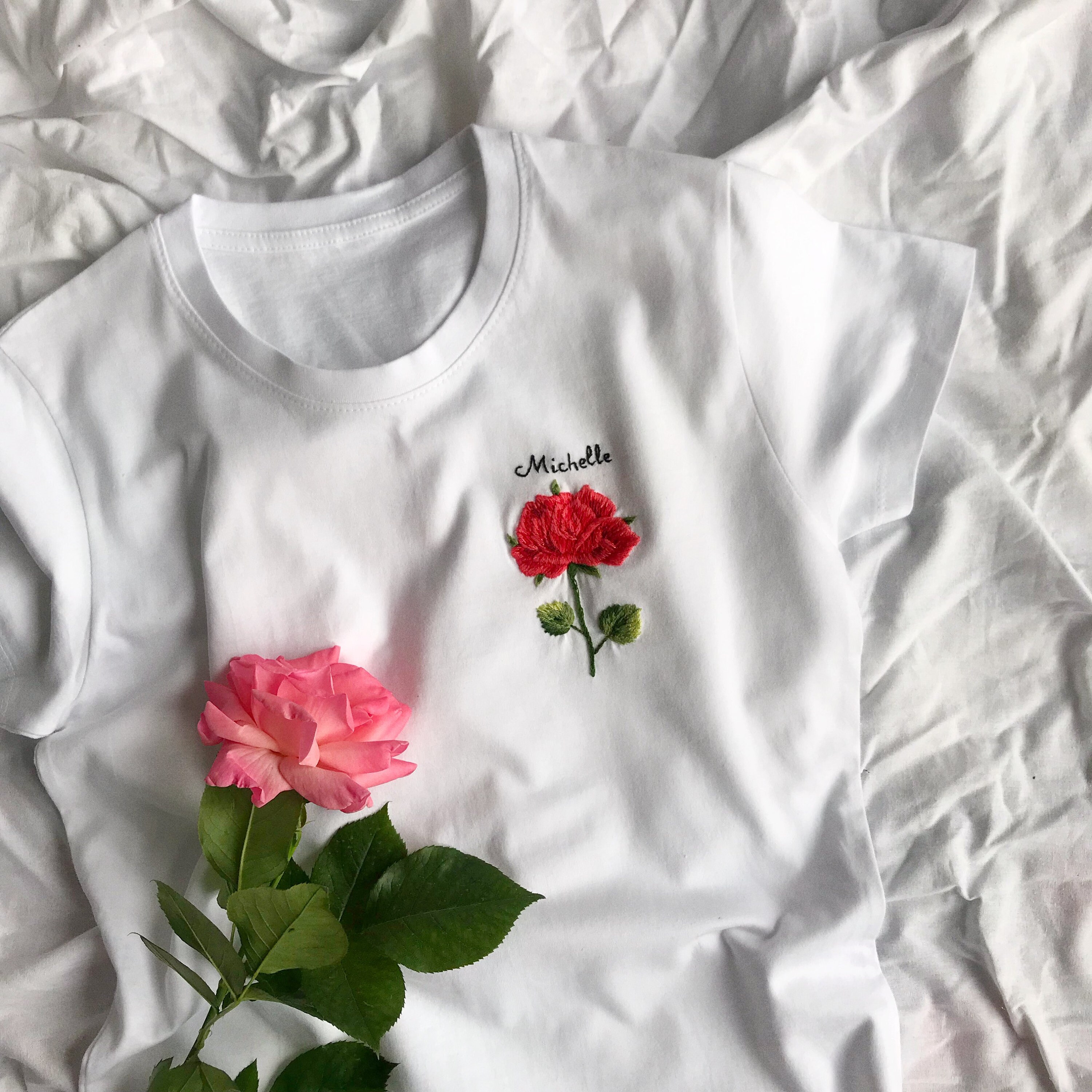 | Rose Hand Embroidered T Shirt Unusual Floral Embroidery Etsy |